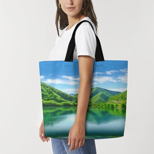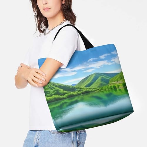 Women's Multi-Functional Shopping Bag,Green Hills And Water Printing Messenger Bag Shoulder Bag for Travel, Work, Shopping & Parties with Inner Pocket, Grocery Bag Lightweight & Water-Resistant 1
