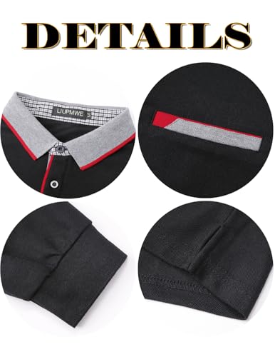 LIUPMWE Polo Shirts for Men Long Sleeve Golf Shirt Slim Fit Classic Plaid Collar Cotton Golf T-Shirts Casual Polo Shirts 3