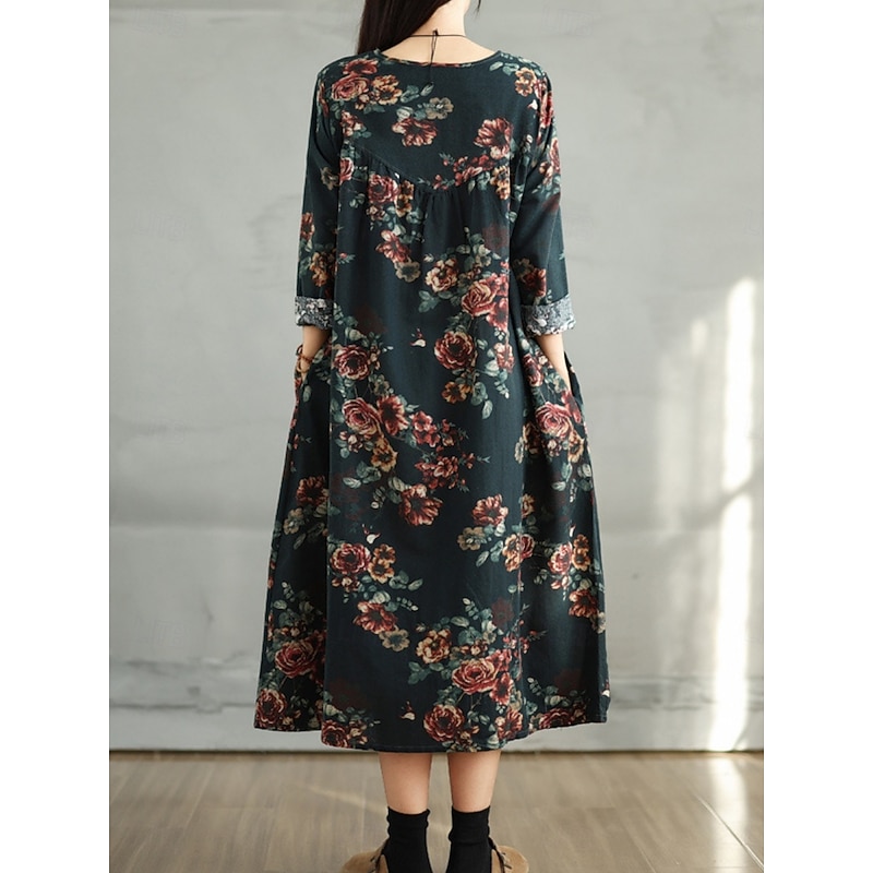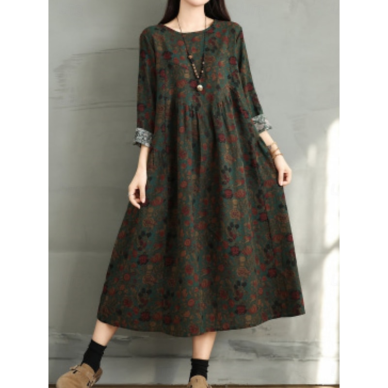 More information about Women's Maxi Dress A Line Dress Casual Daily Regular Fit Floral Long Sleeve Crew Neck Navy Red Dark Green Brown Summer Fall