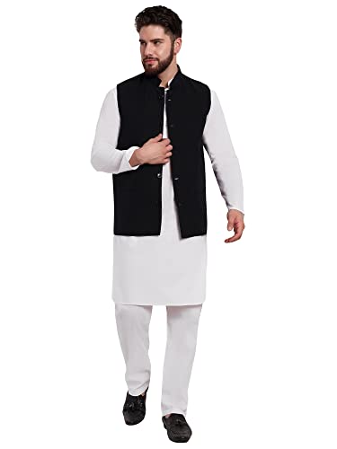 More information about SKAVIJ Mens Classic Nehru Jacket Plain Handmade Cotton Solid Design Hip length Kurta Pajama With Waistcoat
