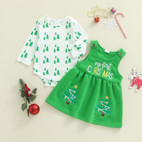• Desgin: Baby girl christmas outfit overalls dress, baby girl christmas dress, newborn christmas dress, christmas baby girl outfit, features round neck romper, long sleeve bodysuit, christmas baby clothes, christmas tree print pattern, and bottom snap design for easy to put on/take off and nappy changing