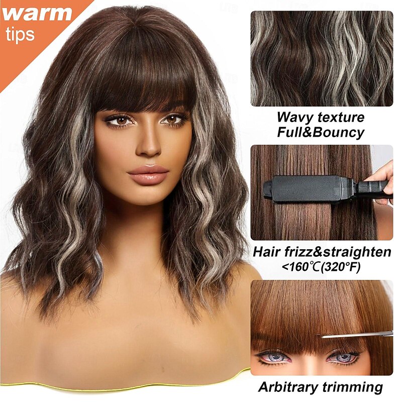 $20.99 - Short Wavy Brown Wig with Bangs Short Dark Brown Highlight Bob Wigs for Women Wavy Bob Wig with Bangs Synthetic Natural Looking Wigs 14 inch 2025. Shop for cheap Synthetic Trendy Wigs online? Buy at lightinthebox.com on sale today!