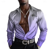 Men's Coconut Tree Tropical Plants Dress Shirt Summer Hawaiian Shirt Button Up Shirt Long Sleeve Shirt Turndown Collared Shirts Fashion Casual Daily Evening Party Yellow Purple S M L
