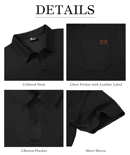 • Waffle Texture: Composed of 95% polyester and 5% spandex, the distinctive pattern on this polo shirts for men provides a richly textured surface. It is lightweight and breathable making it perfect for all-day wear