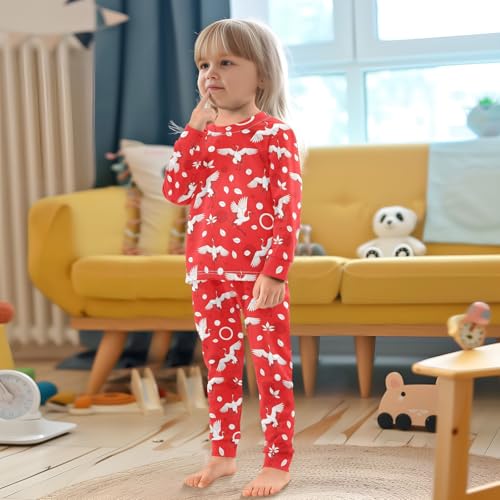 Pajama Sets Long Sleeve Red Cranes and Leaves Pattern Soft Comfy Sleepwear 2 Piece PJS 3-8T 2