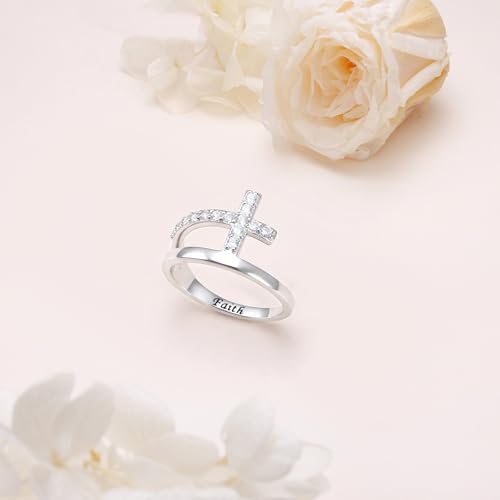 Cross Ring for Women 925 Sterling Silver Cubic Zirconia Fashion Band Faith Promise Rings for Her Mothers Day Gift for Wife Mom 5