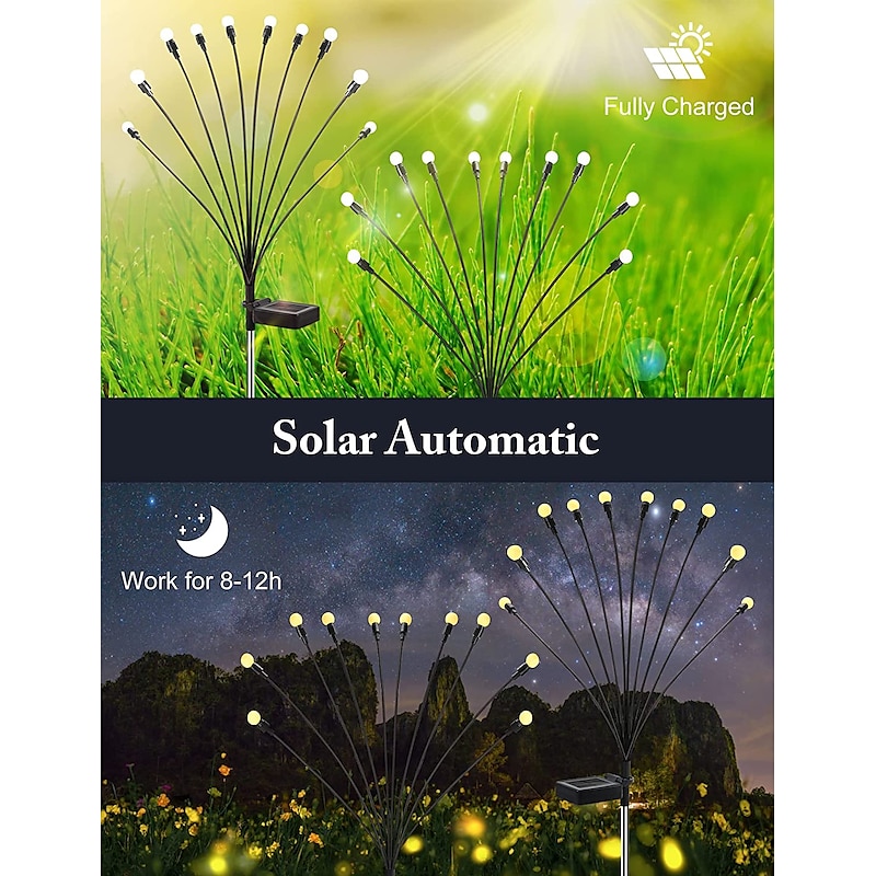 1/2pcs Solar Garden Lights Outdoor Firefly Starburst Swaying Lights Warm White Color Changing RGB Light for Yard Patio Pathway Decoration Swaying When Wind Blows 11