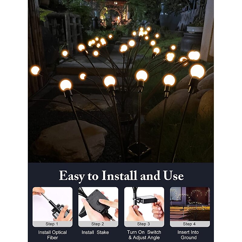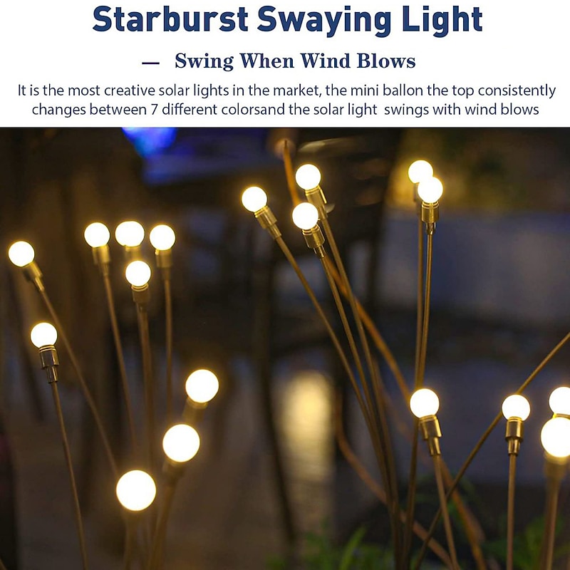 HOT ! 1/2pcs Solar Garden Lights Outdoor Firefly Starburst Swaying Lights Warm White Color Changing RGB Light for Yard Patio Pathway Decoration Swaying When Wind Blows