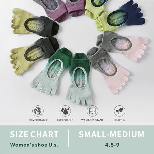 4 Pairs Women’s Non-Slip Yoga Socks, Five-Toe Pilates Socks with Grip for Workout, Jump Rope, Dance, Gym, Barre, Fitness 5