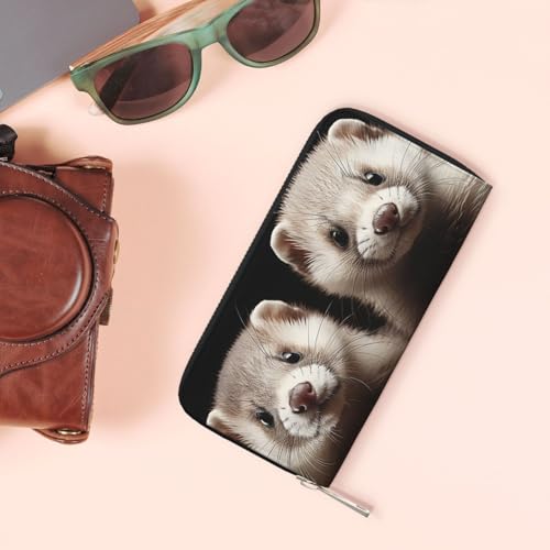 Pu Leather Wallet For Women Girl, Zip Around Credit Card Holder Ferrets Long Wallet Clutch Purse Waterproof Travel Handbag 1
