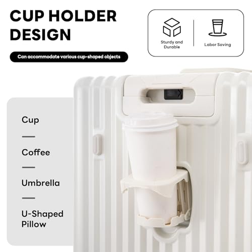 2-Pice Luggage Set 20/24, Aluminum Frame Luggage Set with Cup Holder & Charge,TSA Lock,Hardshell, Zipperless Design, Carry-On and Checked Luggage, Unisex (Model B – White, 20inch) 6