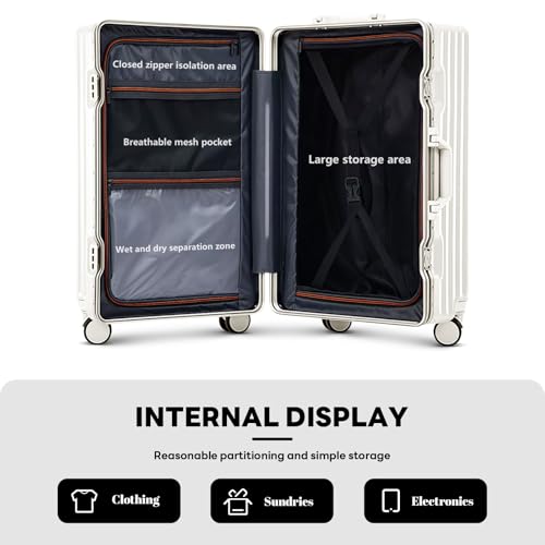 2-Pice Luggage Set 20/24, Aluminum Frame Luggage Set with Cup Holder & Charge,TSA Lock,Hardshell, Zipperless Design, Carry-On and Checked Luggage, Unisex (Model B – White, 20inch) 5