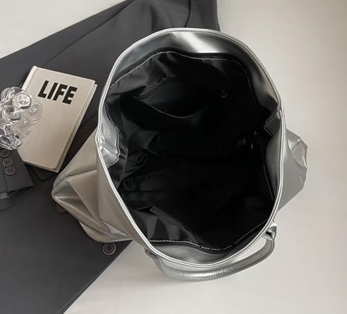 • Urban Edge Aesthetic:Combines sleek PU construction with bold metallic silver/classic black/vibrant red options and contrast stitching. The slouchy bucket silhouette delivers downtown cool perfect for elevating streetwear and casual looks.
