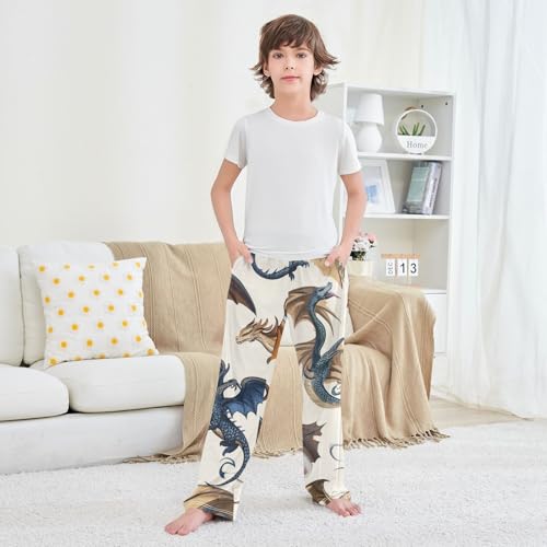 Retro Dragons Boys Long Pants Soft Trousers Elastic Waist Kids Lounge Bottoms with Pockets S-XL 6