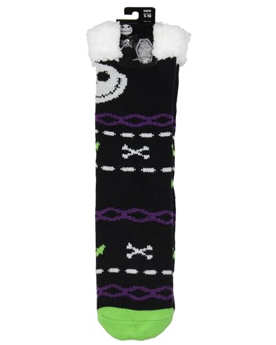 HOT ! Bioworld The Nightmare Before Christmas Jack Skellington Adult Thick Sherpa Lined Home Thick Slipper Socks With Non-Slip Sole For Women or Men