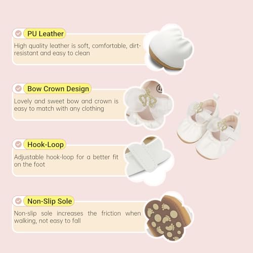 Sole material: FabricOuter material: LeatherClosure type: Hook & Loop【top-grade】This baby girl dress shoes are made of high quality soft PU leather, the relaxing soft padded lining can relieve the pressure on the feet, and the safety test is qualified, there is no irritation to the baby's foot skin, so parents can buy with confidence!【Anti-slip】This infant Mary Jane shoes with anti-slip design on the bottom can provide a strong grip to prevent newborns from slipping while crawling and playing, safer to wear and more fun for your baby to play.【Easy to put on and take off】Hook-and-loop="loop" buckle is easy to put on and take off and adjust the elasticity, so that this newborn princess flat shoes firmly attached to the baby's feet, will not be kicked off.【Perfect Gift】The cute bowkont design is suitable for all kinds of formal or everyday occasions, perfect for school, parties, weddings, and photo shoots! They are the perfect gift for a princess and satisfy every girl's princess dream.【Quality after-sales service】If you have any problem in the process of buying infant oxford dress loafer shoes, please contact us, we will deal with it within 24 hours. Perfect for everyday use. High quality materials and excellent craftsmanship ensure long-lasting durability.
