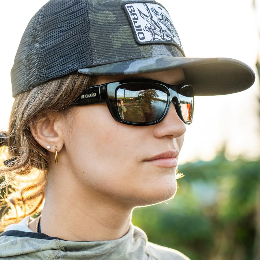 • Polarized Lenses – Eliminate glare for enhanced vision on the water. Bajío’s advanced polarization technology absorbs horizontal light waves while allowing vertical light to pass through, reducing glare and improving depth perception. This technology enhances contrast, increases visibility, and helps anglers spot fish from greater distances—making every cast more precise.