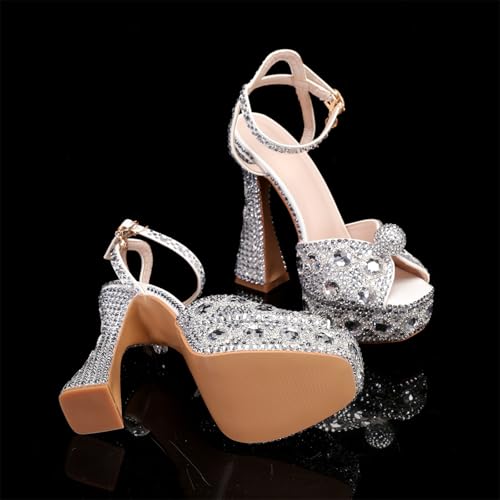 Minishion Womens Platform Wedding Shoes Slingback High Heel Party Evening Sandals with Pearl 4