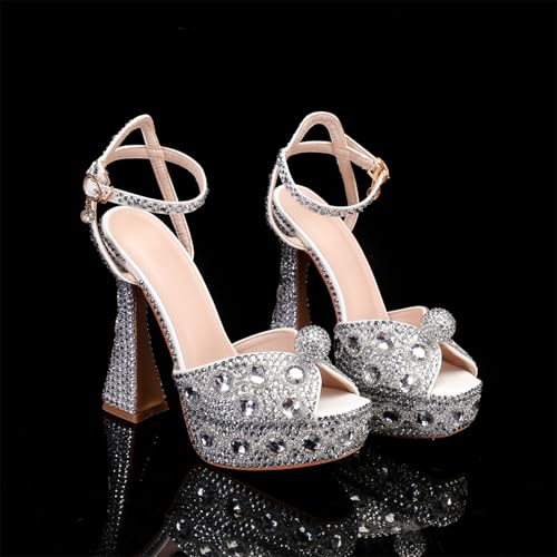 Minishion Womens Platform Wedding Shoes Slingback High Heel Party Evening Sandals with Pearl
