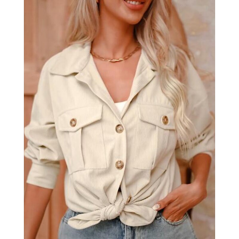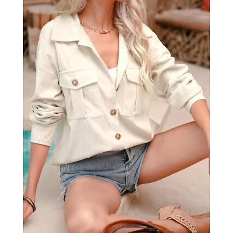 More information about Women's Shirt Jacket Shacket Comfortable Pocket Buttons Casual Plain Holiday Going out Weekend Single Breasted Regular Turndown Regular Fit Long Sleeve Outerwear Brown Army Green Dark Gray Fall Winter