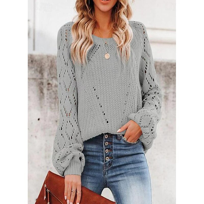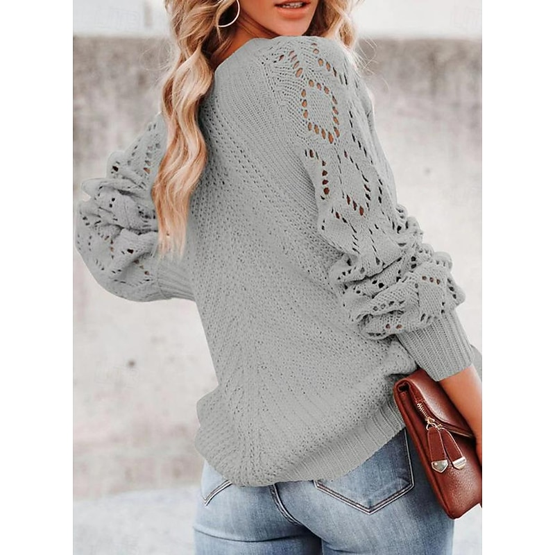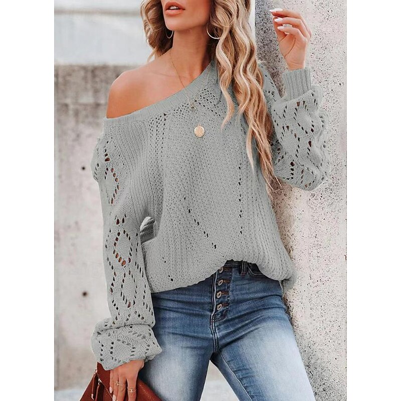 More information about Women's Sweater Stylish Solid Color Crochet One Shoulder Knitted Half Sleeve Regular Tops Knit Daily White Pink Spring Fall