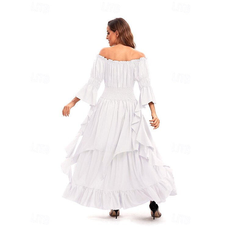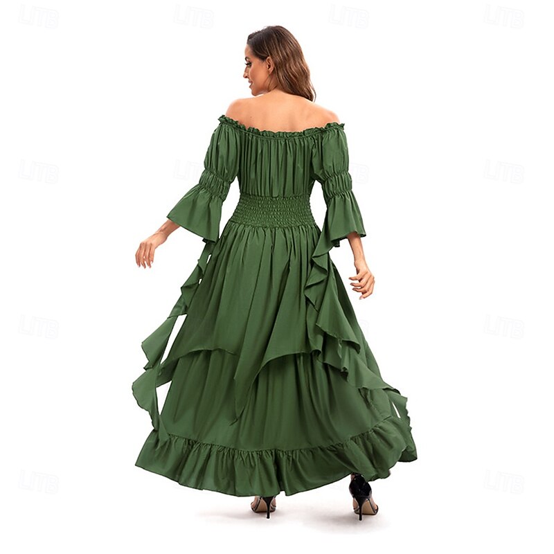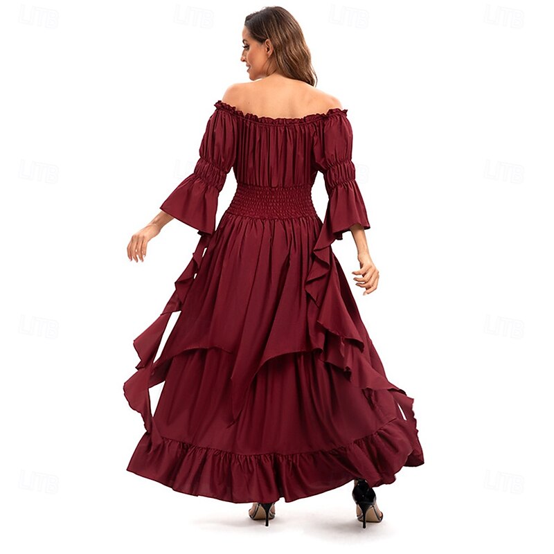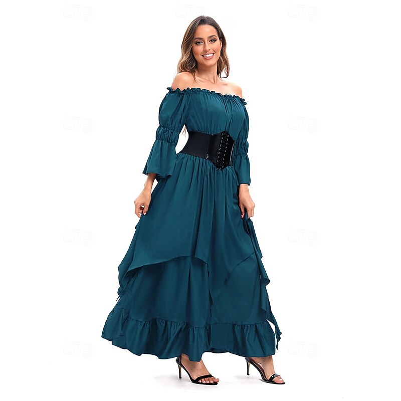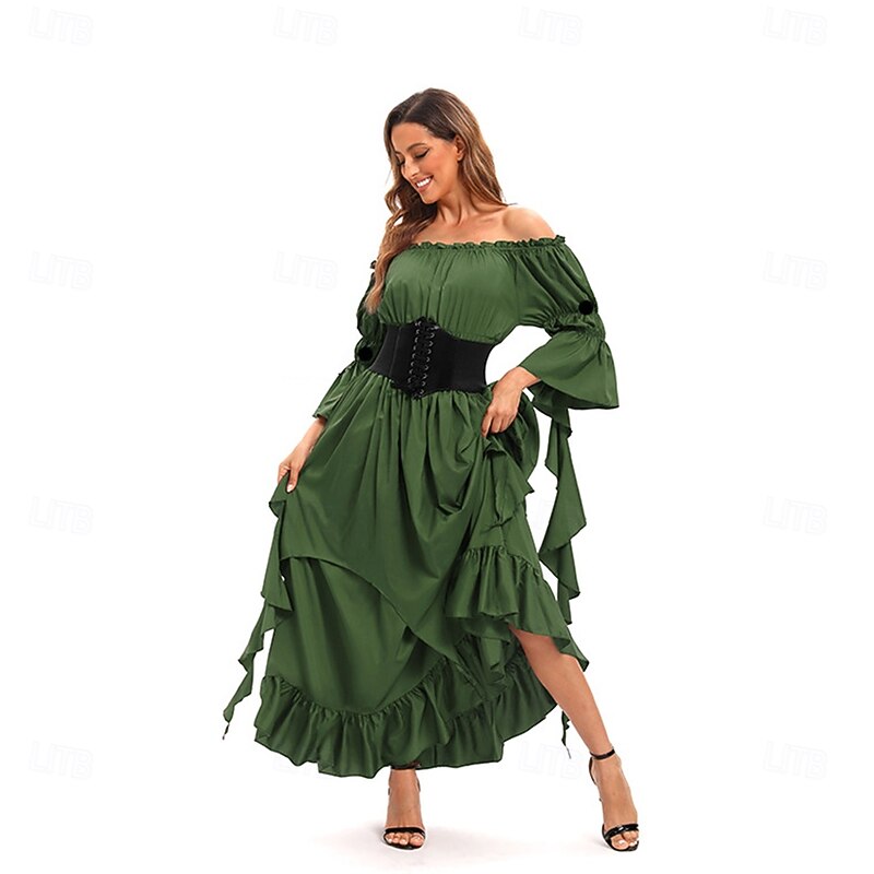 Retro Vintage Medieval Dress Bell Sleeve Puff Sleeve Viking Elven Fancy Dress Women's Celtic Pirate Fantasy Halloween Carnival Masquerade Casual Daily LARP Adults' Dress Belt All Seasons 36