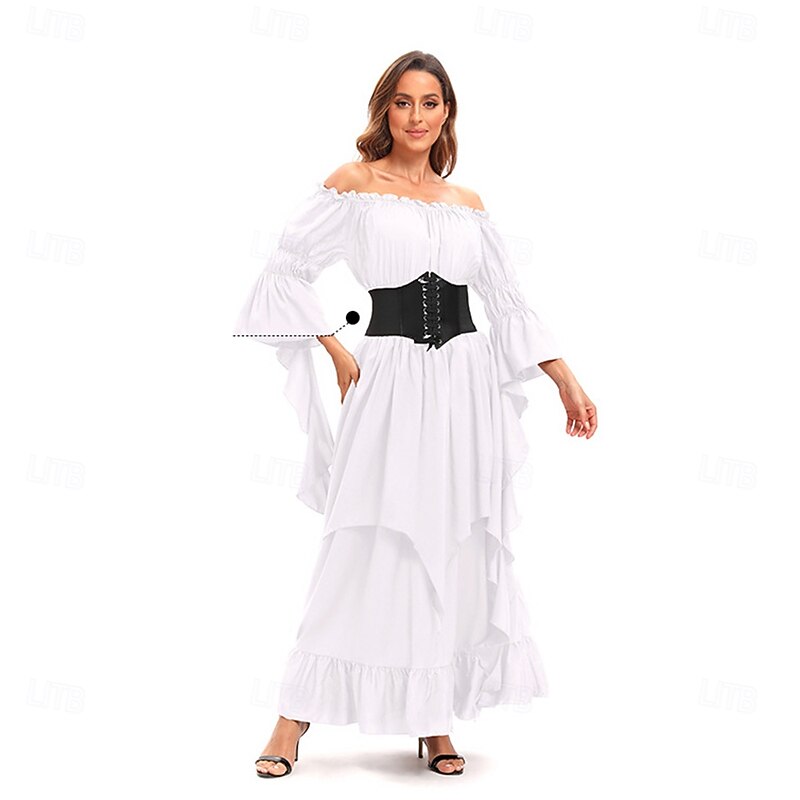 Retro Vintage Medieval Dress Bell Sleeve Puff Sleeve Viking Elven Fancy Dress Women's Celtic Pirate Fantasy Halloween Carnival Masquerade Casual Daily LARP Adults' Dress Belt All Seasons 12