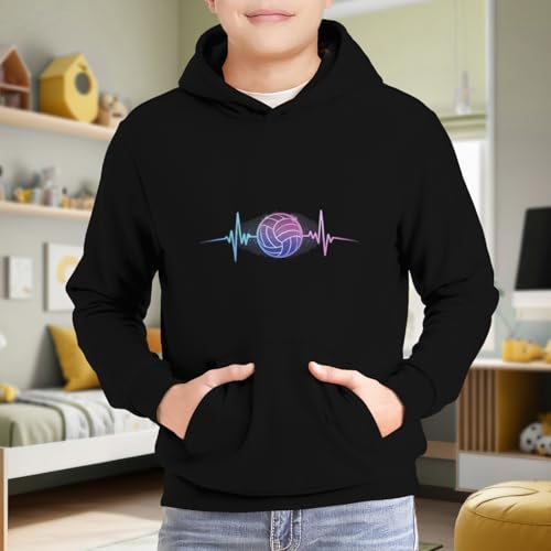 Kids Vintage Heartbeat Volleyball Player Boys Girls Lightweight Kangaroo Pocket Fleece Hoodies