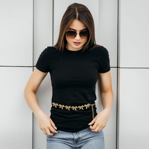 Gold Bow Chain Belt Decorations Gold Chain Belt, Gold Belt Decor Cute Bow Gold Belts Supplies for Women, Chain Belts for Women Fashion, Gold Chain Belt Woman Suitable for each Kinds of Clothing