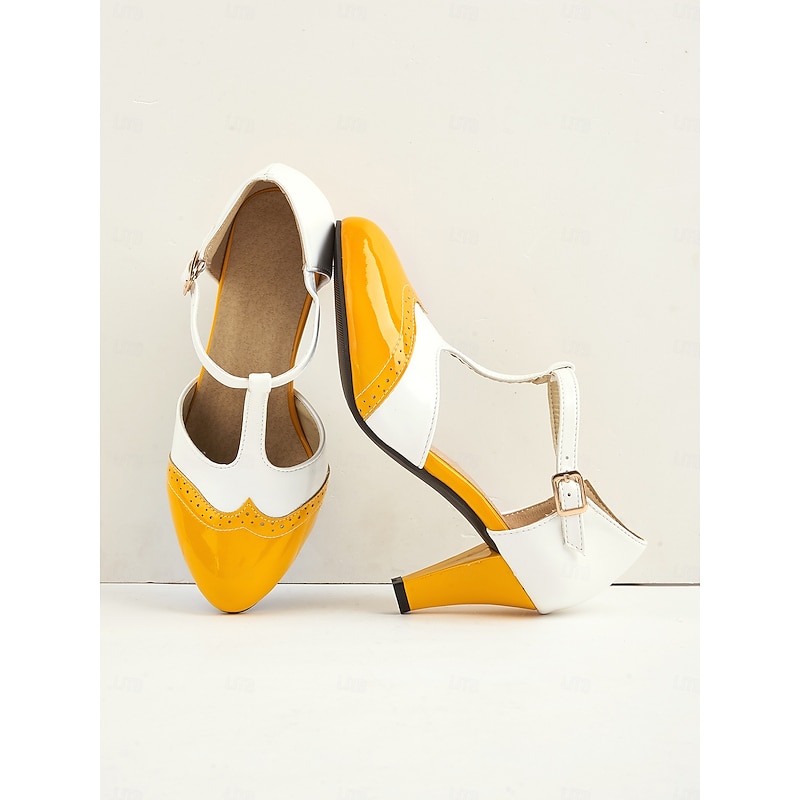 Women's 1950s Vintage T-Strap Mary Jane Heels – Two-Tone Brogue Low Heel Shoes for Retro Parties, Office Wear, and Special Occasions 1