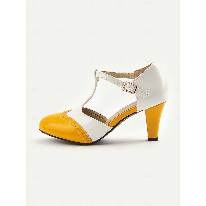 Women's 1950s Vintage T-Strap Mary Jane Heels – Two-Tone Brogue Low Heel Shoes for Retro Parties, Office Wear, and Special Occasions 5