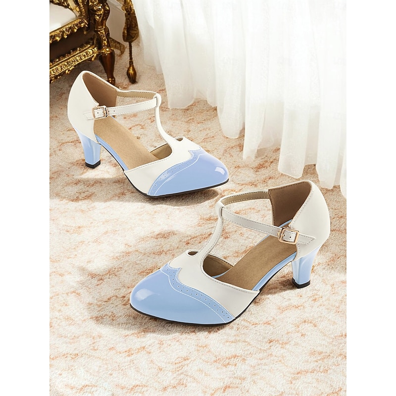 Women's 1950s Vintage T-Strap Mary Jane Heels – Two-Tone Brogue Low Heel Shoes for Retro Parties, Office Wear, and Special Occasions 16