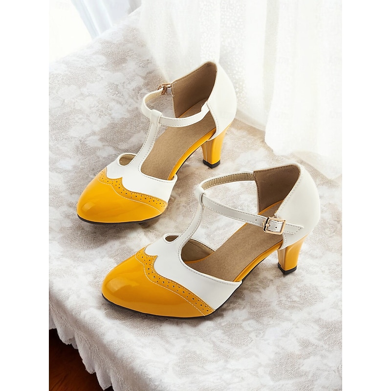 Women's 1950s Vintage T-Strap Mary Jane Heels – Two-Tone Brogue Low Heel Shoes for Retro Parties, Office Wear, and Special Occasions 17