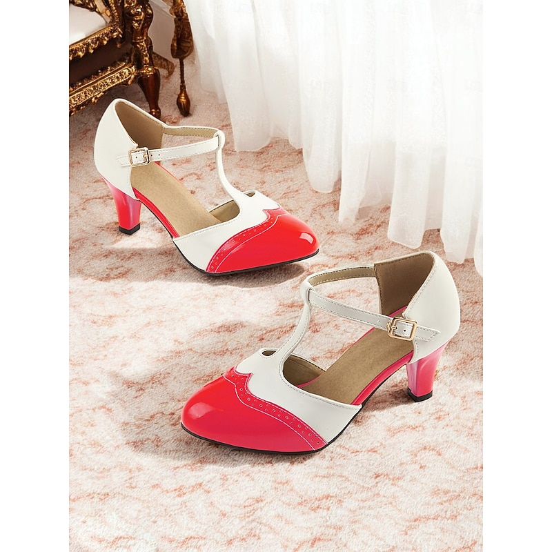 More information about Women's 1950s Vintage T-Strap Mary Jane Heels – Two-Tone Brogue Low Heel Shoes for Retro Parties, Office Wear, and Special Occasions
