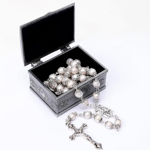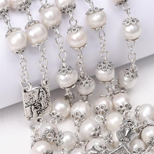 • HEALTHY AND DURABLE: real pearls with a diameter of 0.35 inches are very rare, and Rosary Beads chain made of zinc alloy with silver ox plating, preventing corrosion, assure durability for years