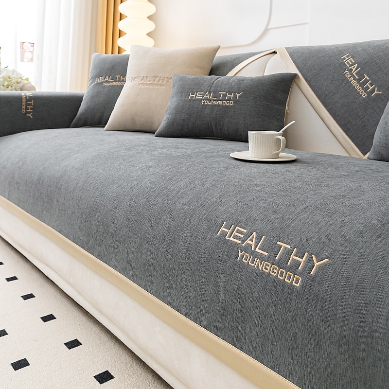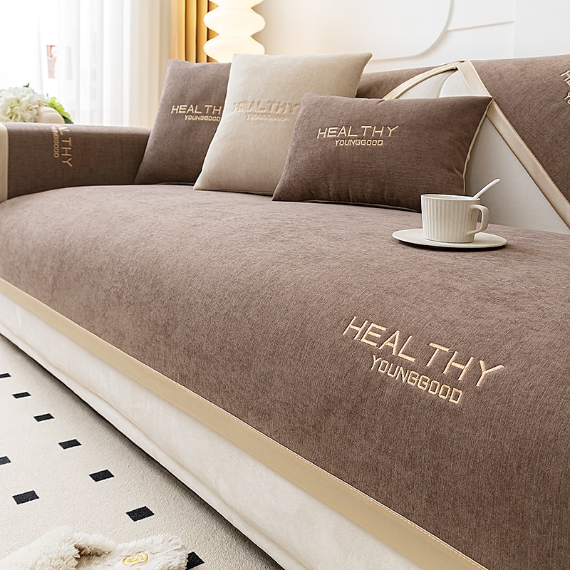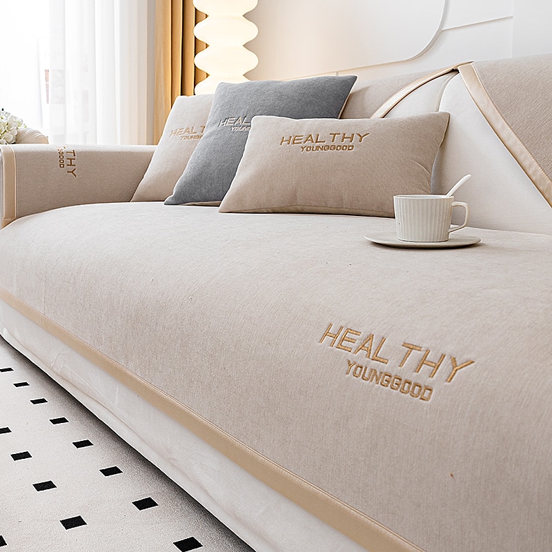 Chenille Sofa Mat Sofa Cover Couch Slipcover Anti-Cat Scratch Sofa Seat Pad Sectional Cover for Armchair Loveseat 4 or 3 seater L shape for Kids,Pet,Cats(Not Sold By A Set) 1