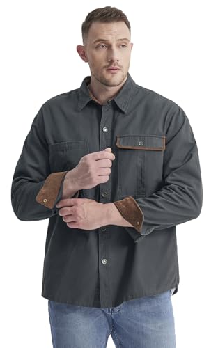 Mr.Stream Men's Washed Cotton Two Pockets Long Sleeve Work Snap Button Up Solid Corduroy Twill Shirt 6