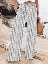 More information about Women's Wide Leg Pants Trousers Palazzo Pants Fashion Boho Full Length High Waist Plaid Drawstring Elastic Waist Print Breathability Comfortable Street Daily Wear Going out White Spring Fall Regular