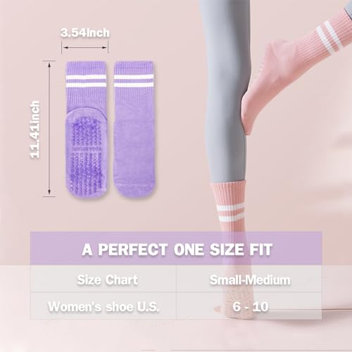 Pilates Socks For Women with Non Slip Grip 4 Pairs Yoga Grippy Sock For Barre, Dance, Hospital Sticky Slippre Sock 6