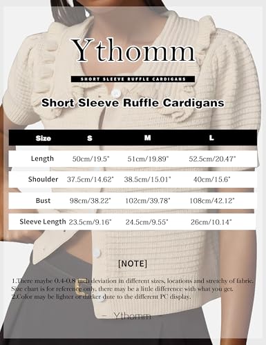 HOT ! Ythomm Womens Summer Sweaters Ruffle Collared Lantern Short Sleeve Crochet Knit Sweater Tops Cute Button Open Front Cardigans