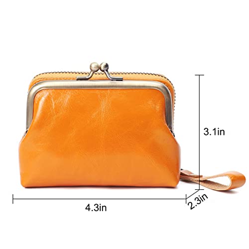Wallets for Women Cowhide Blocking Card Holder 2 in 1 Organizer Ladies Clutch Kiss Lock Purse Yellow 5