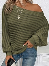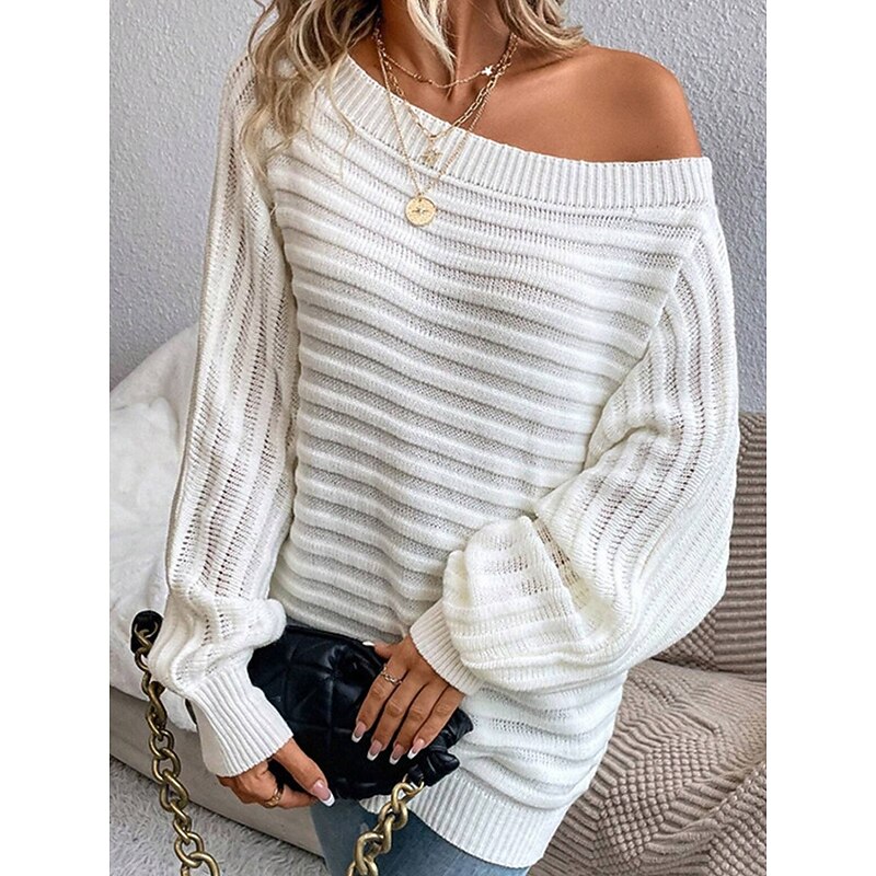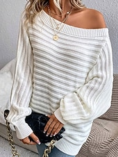 More information about Women's Sweater Pullover Sweater Jumper Casual Soft Pure Color Ribbed Off Shoulder Knitted Long Sleeve Regular Tops Knit Outdoor Daily Weekend Black White Fall
