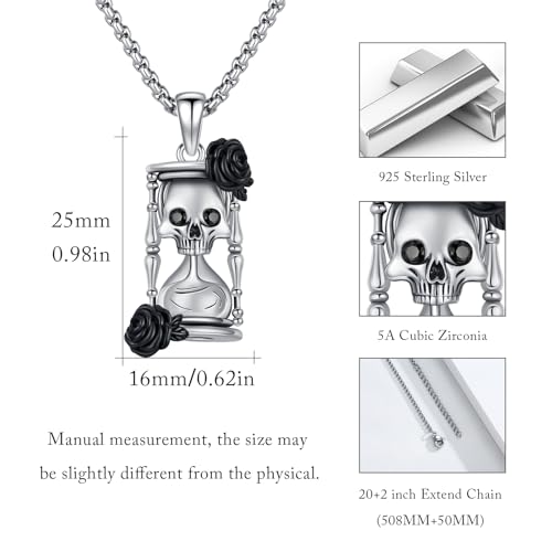 Hourglass Urn Necklace 925 Sterling Silver Skull Pendant Necklace Rose Gothic Cremation Jewelry for Ashes Men Women 6