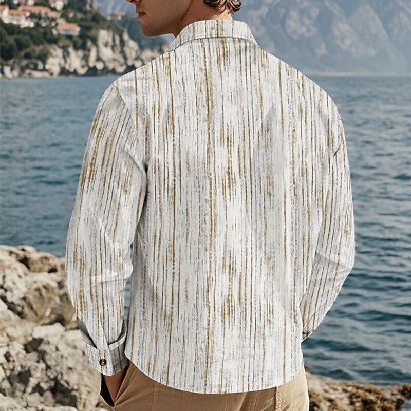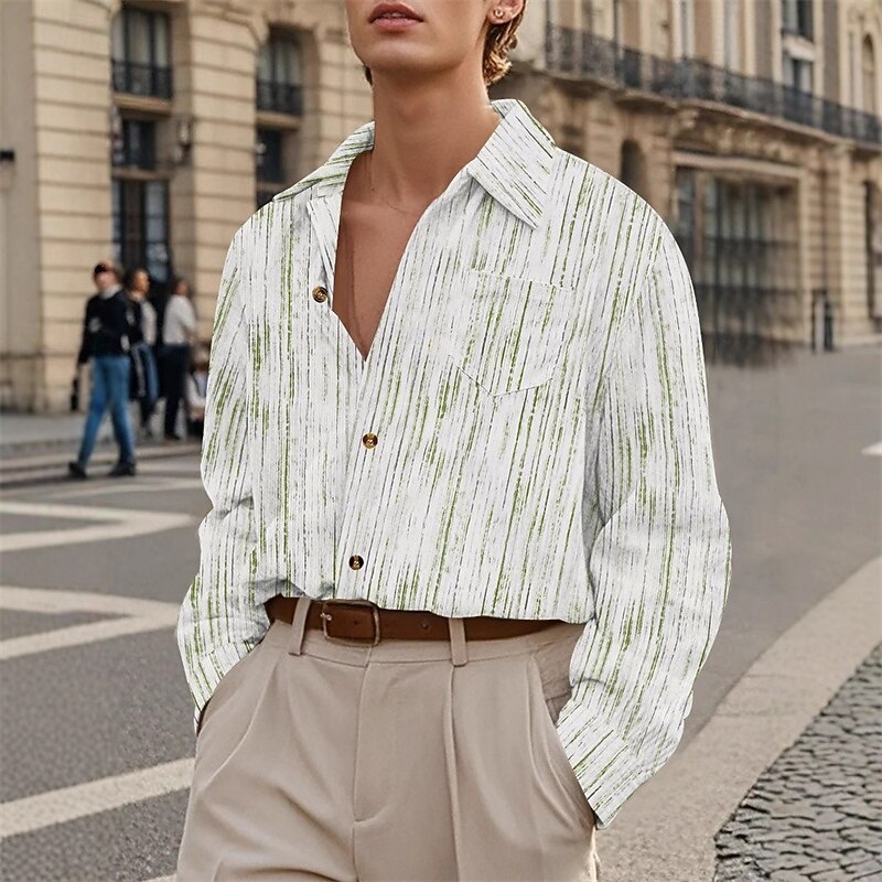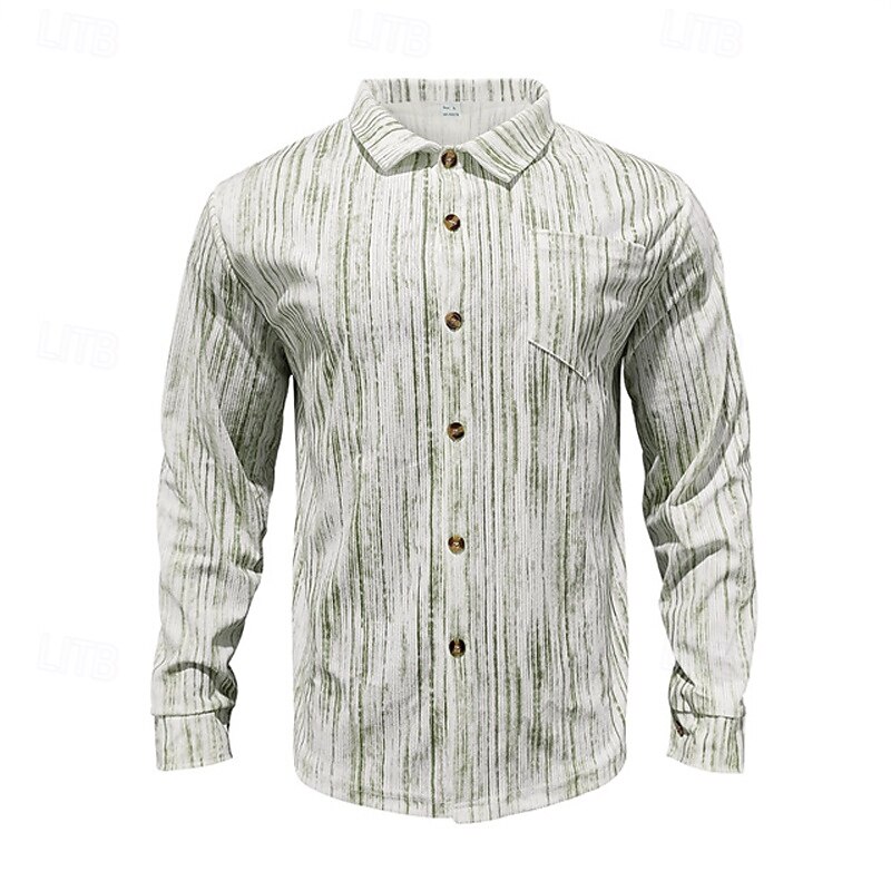 More information about Men's Shirt Summer Shirt Casual Shirt Beach Shirt Button Up Shirt Red Green khaki Light Grey Long Sleeve Stripes Lapel Vacation Hawaiian Pocket Clothing Apparel Polyester Fashion Casual Comfortable