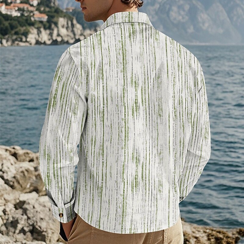Men's Shirt Summer Shirt Casual Shirt Beach Shirt Button Up Shirt Red Green khaki Light Grey Long Sleeve Stripes Lapel Vacation Hawaiian Pocket Clothing Apparel Polyester Fashion Casual Comfortable 1
