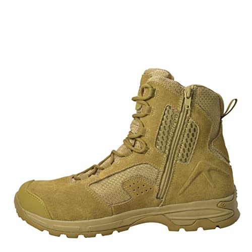 Ad Tec Tactical Boots For Men - 8″ Suede Leather & Waterproof Boots With Side Zipper - Men's Work & Safety Boots With Oil & Slip Resistant Outsole, Coyote 6