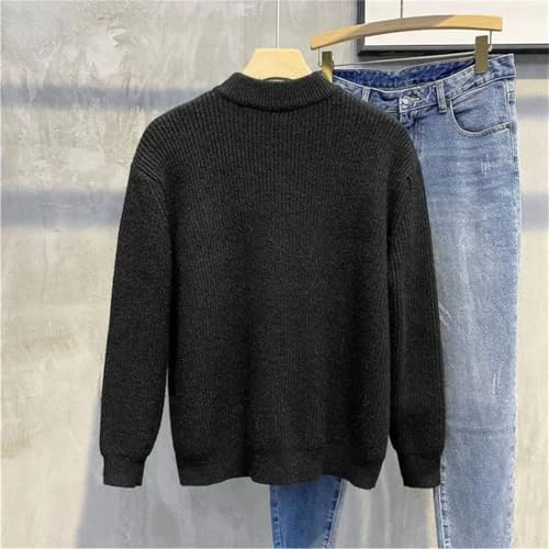 Mens Knitted Sweaters Black Clothes Plain Cardigan Solid Zip-up Zipper Collared Long Sleeve Tops 3