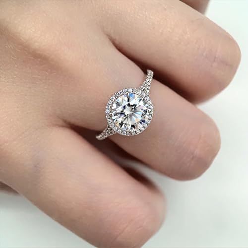 14K Moissanite Engagement Ring, 14K Gold 2 Carat Moissanite Ring, 2 Carat Round Cut Moissanite Rings, 14K White Gold Hidden Halo Engagement Rings 2