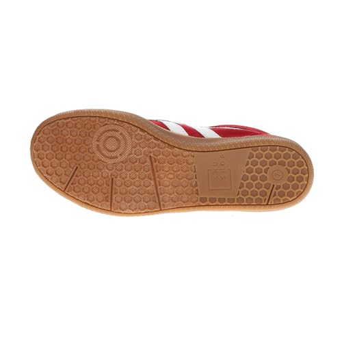 - Red faux suede upper for a bold, statement-making look