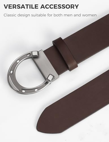 HOT ! Lucky Horseshoe Leather Belt for Men & Women - 1.5 Inch Genuine Leather Casual Belt with Metal Buckle